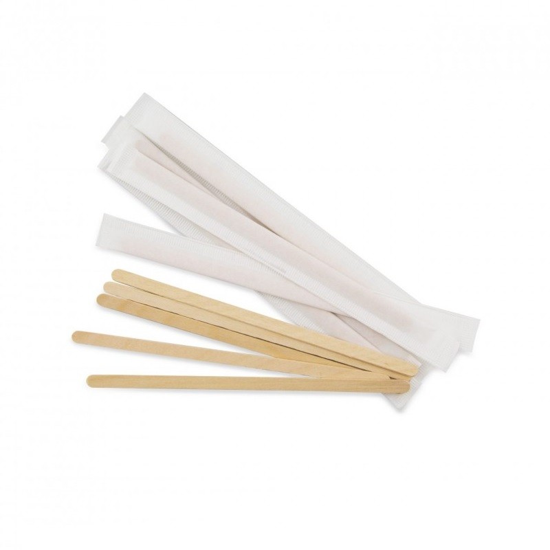 Removedor para café fabricado en poliestireno cristal de 105 mm (10,5 cm) enfundada en paquete de papel.
