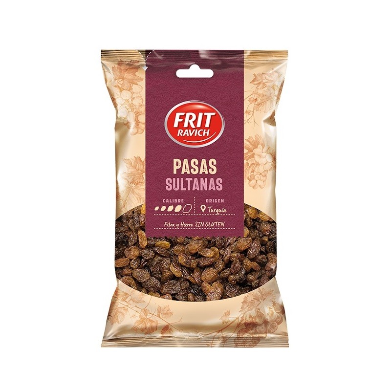 Pasas sultanas. El consumo regular de pasas Frit Ravich puede formar parte de una dieta variada y equilibrada. Fuente de fibra y de hierro que ayuda a disminuir el cansancio y la fatiga.