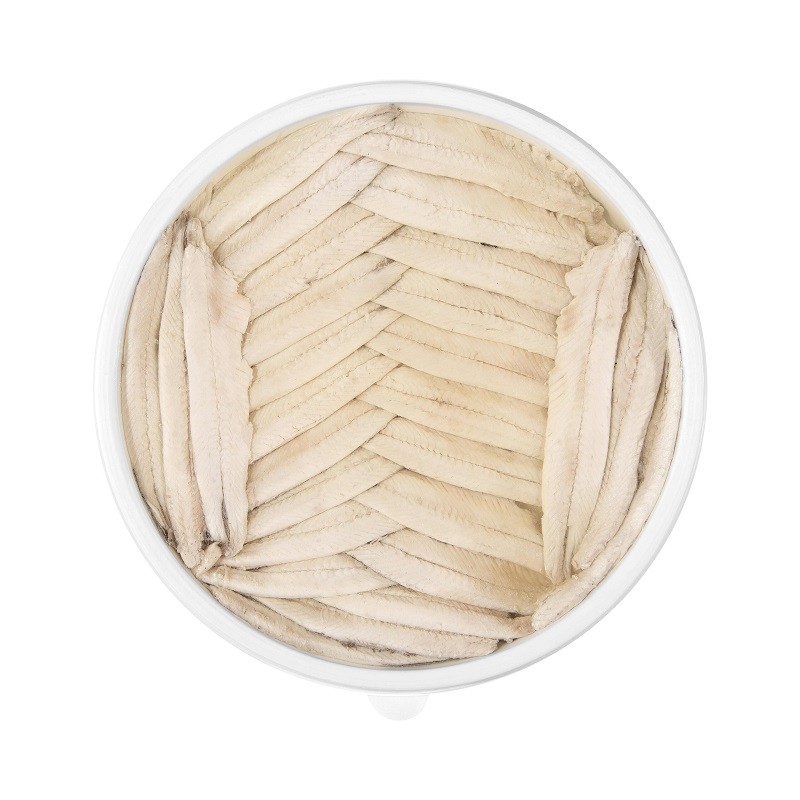Tarrina de filetes de boquerón del Cantábrico de costera macerados en vinagre y envasados en aceite de girasol.